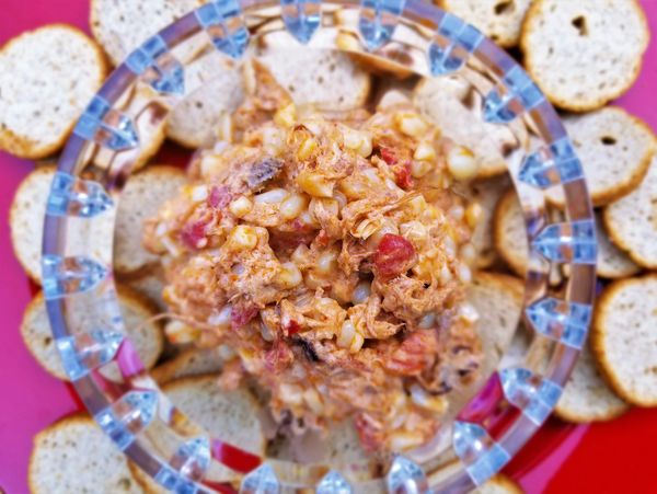 Tender pit-smoked pulled pork, slow-cooked to perfection, takes center stage in this dip. Crafted with a touch of cream cheese for luscious richness; tangy diced tomatoes and sweet shoepeg corn for refreshing pops of flavor; this deliciousness is then topped off with the signature zest of vinegar-based barbecue sauce for a mouthwatering kick.